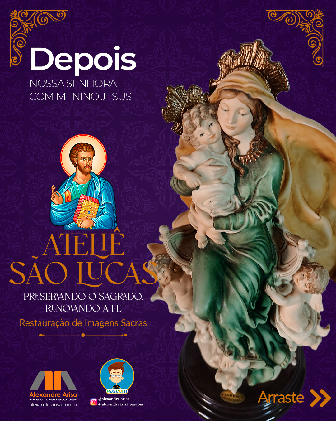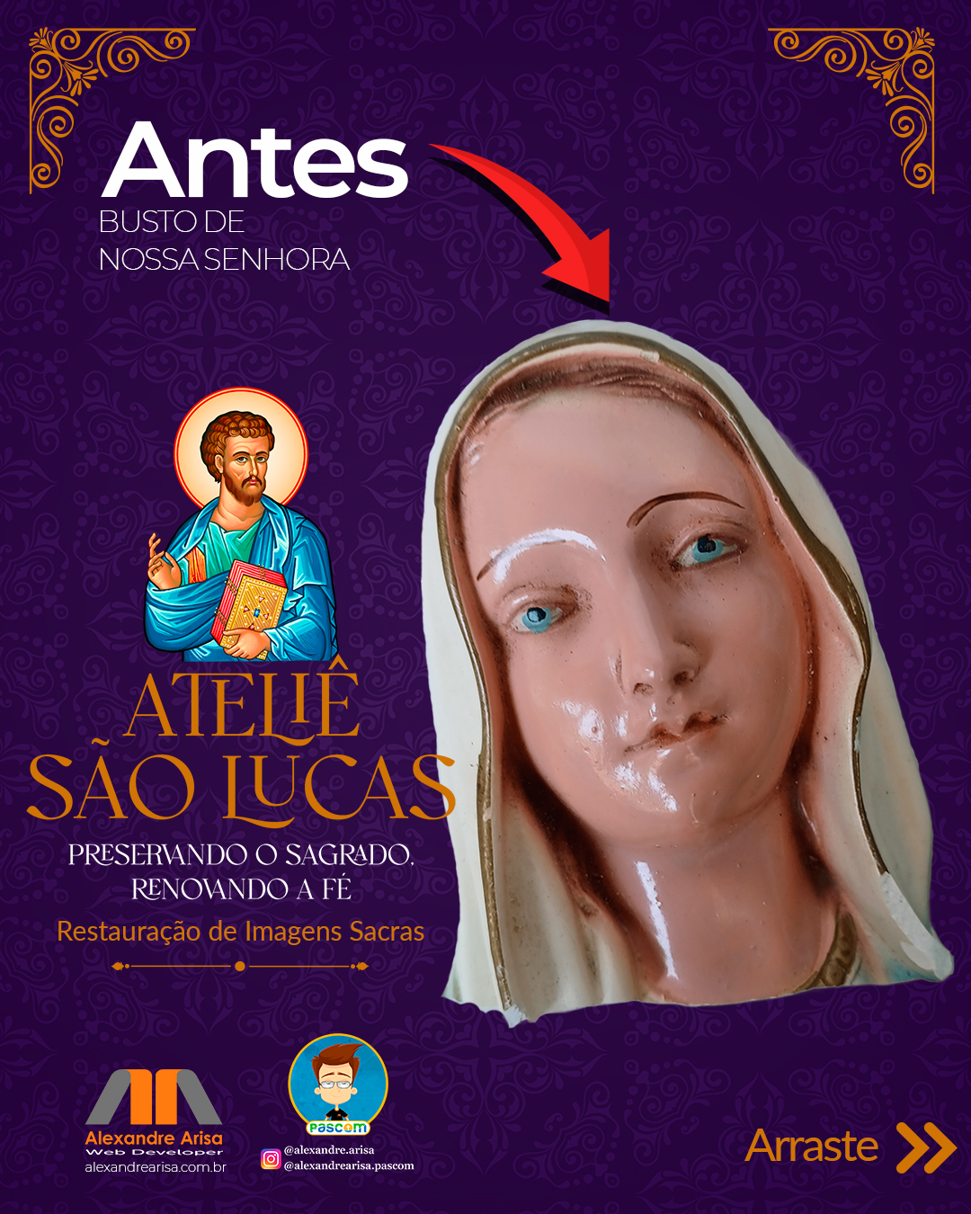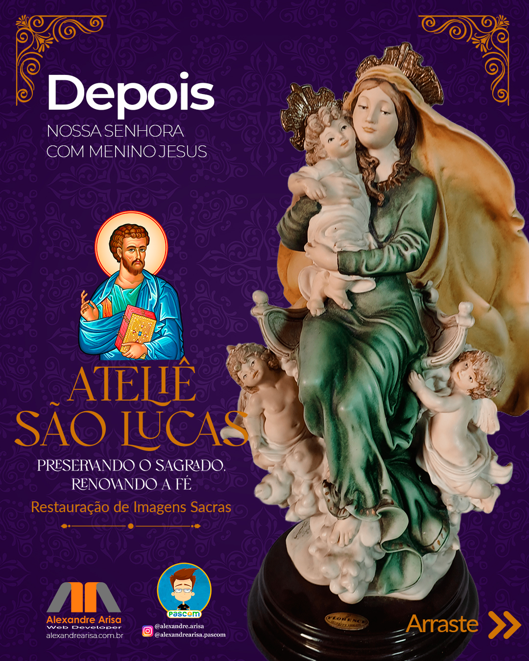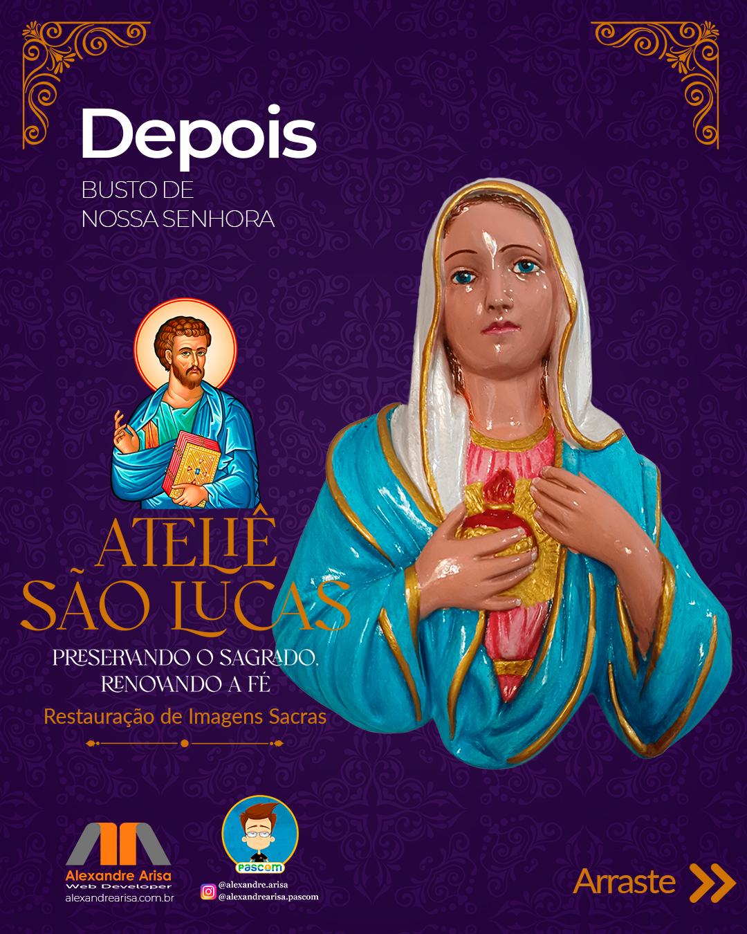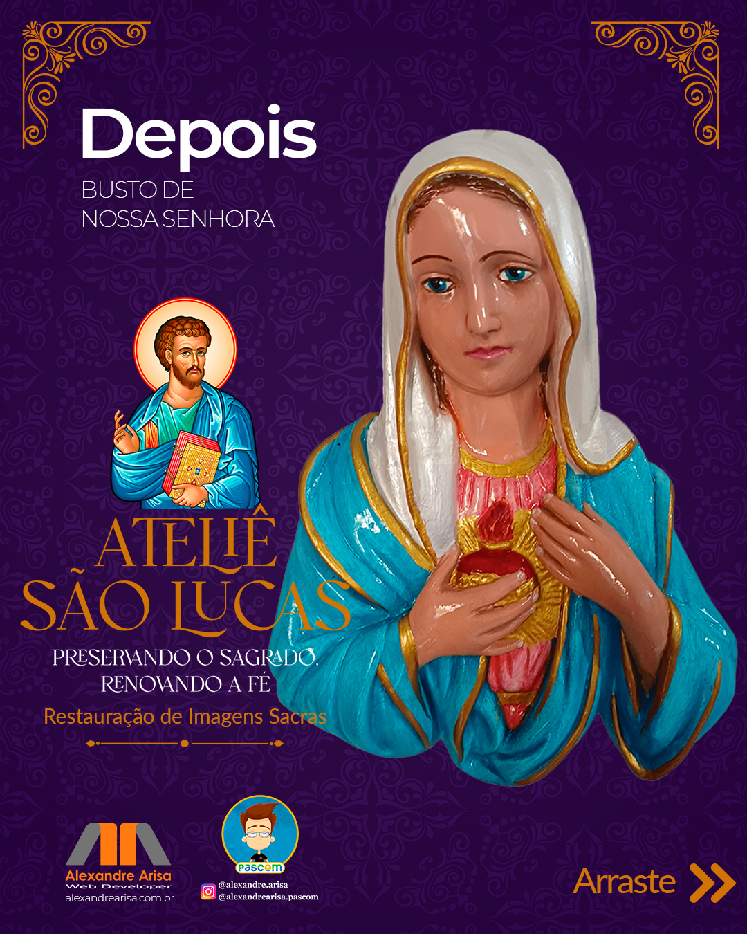 Mais do que restaurar, buscamos perpetuar a beleza e a mensagem de fé transmitidas por cada arte sacra, para que continuem a inspirar e evangelizar as futuras gerações.