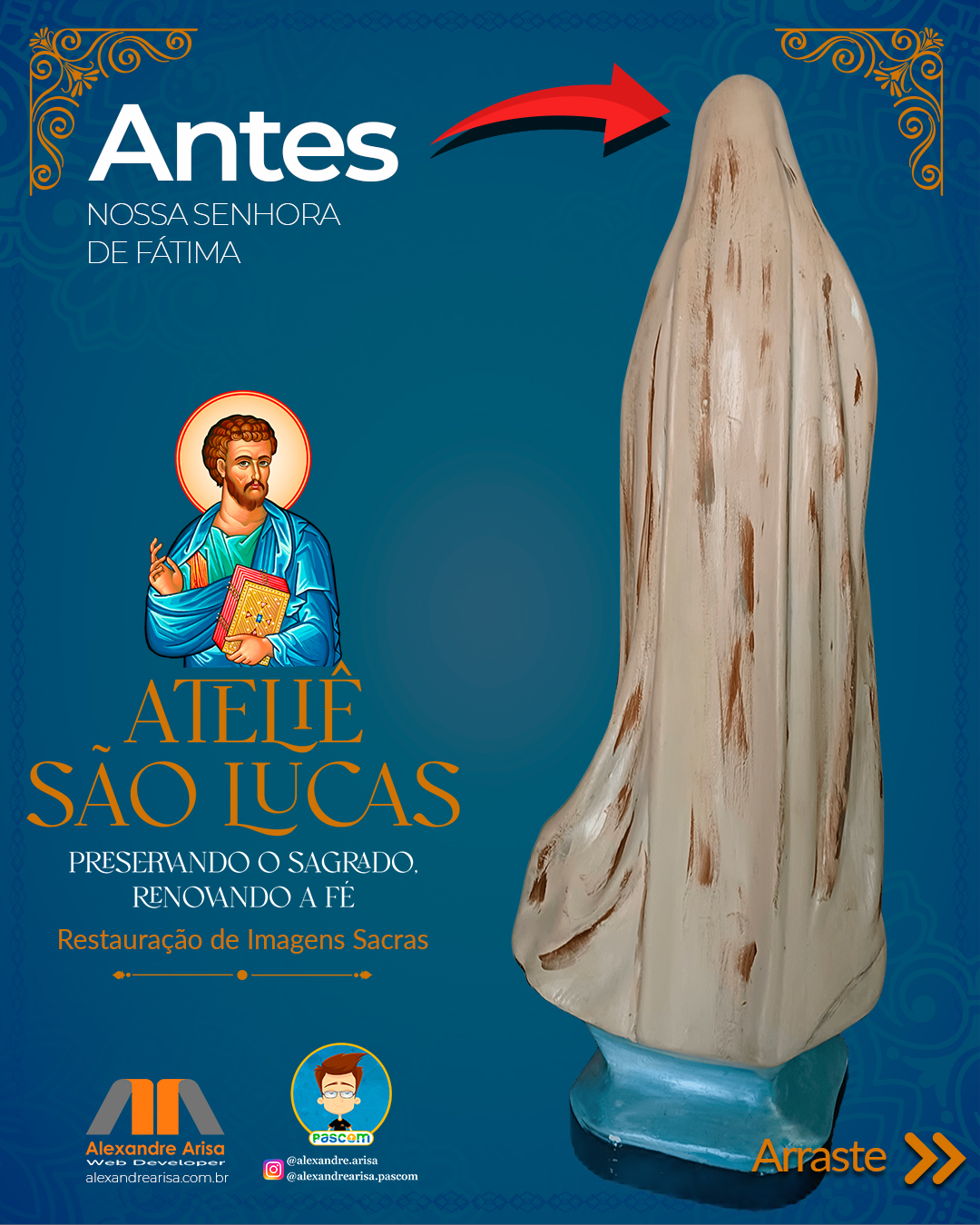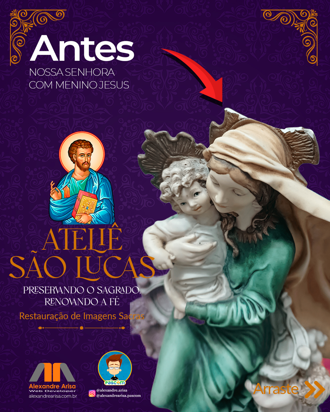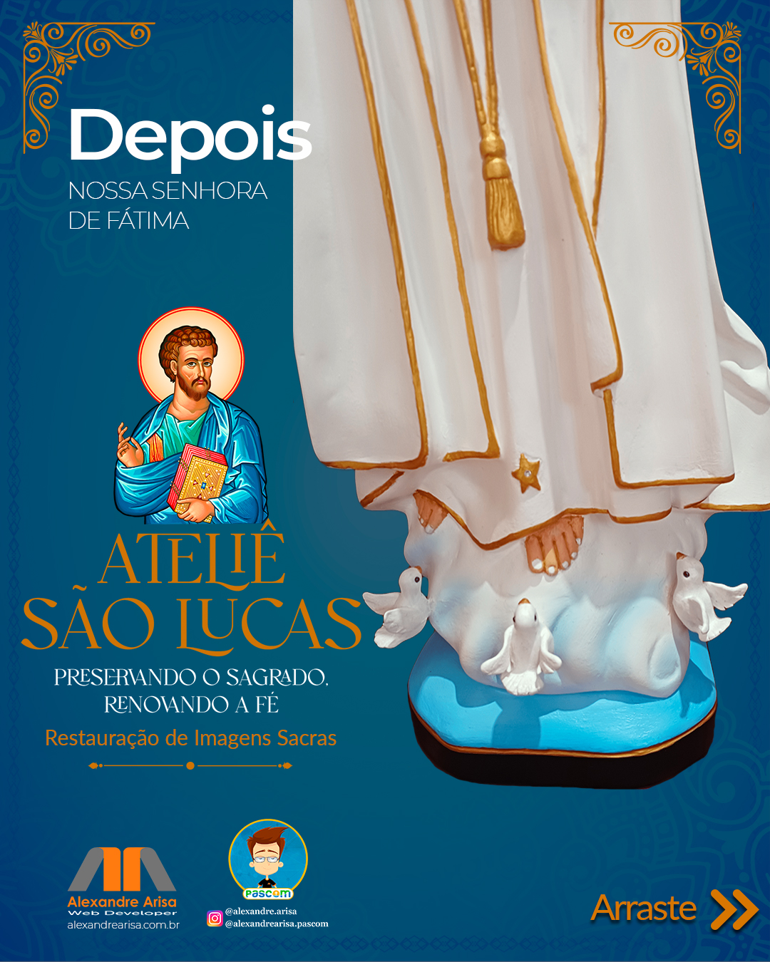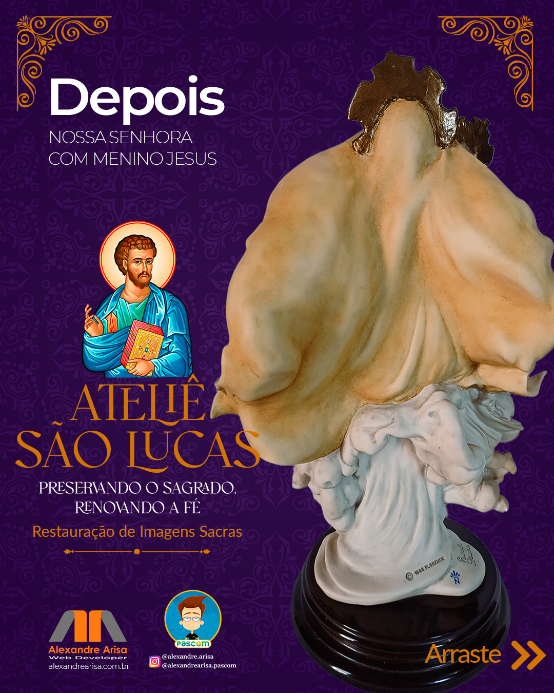 Mais do que restaurar, buscamos perpetuar a beleza e a mensagem de fé transmitidas por cada arte sacra, para que continuem a inspirar e evangelizar as futuras gerações.