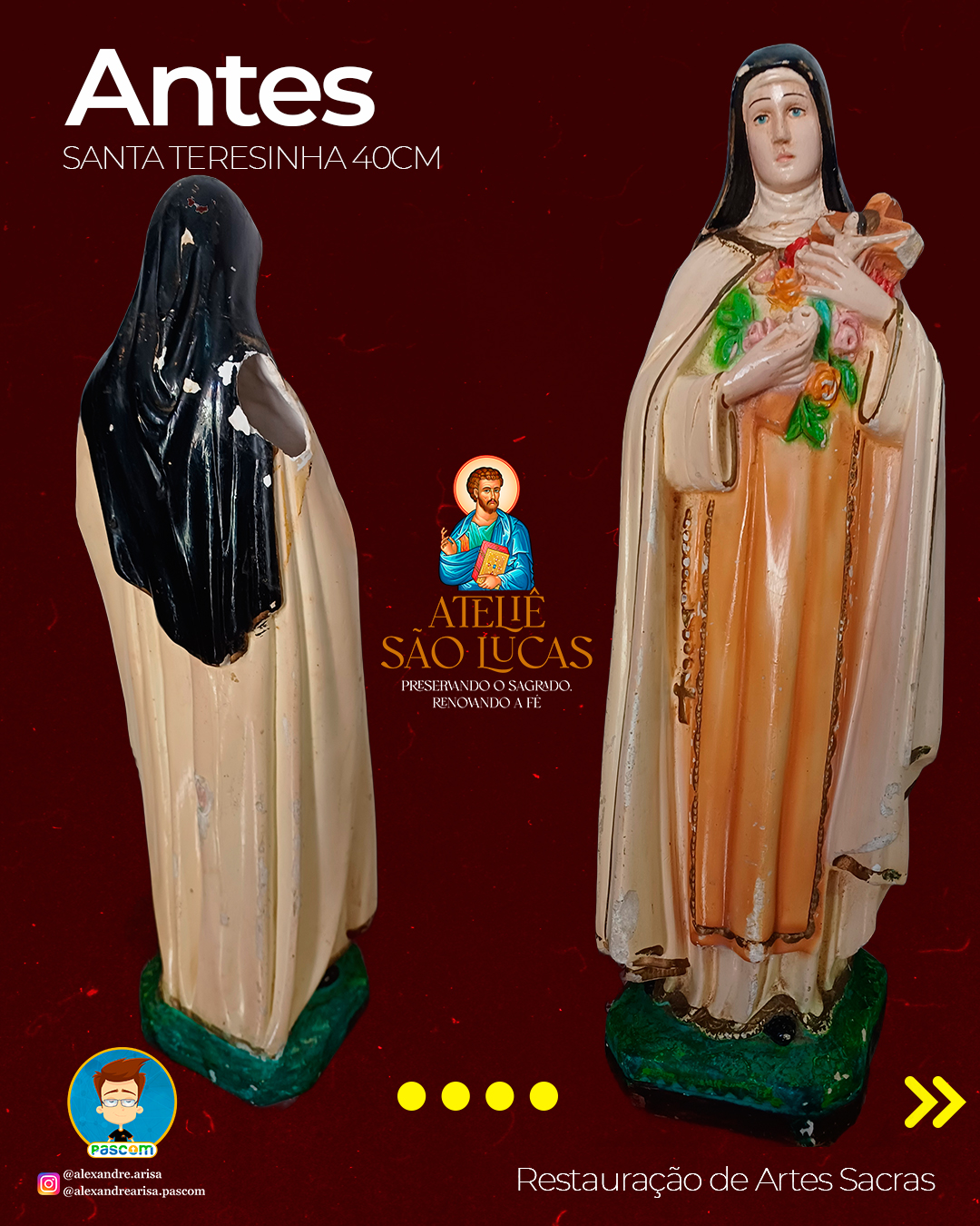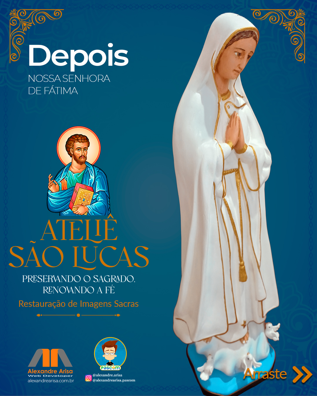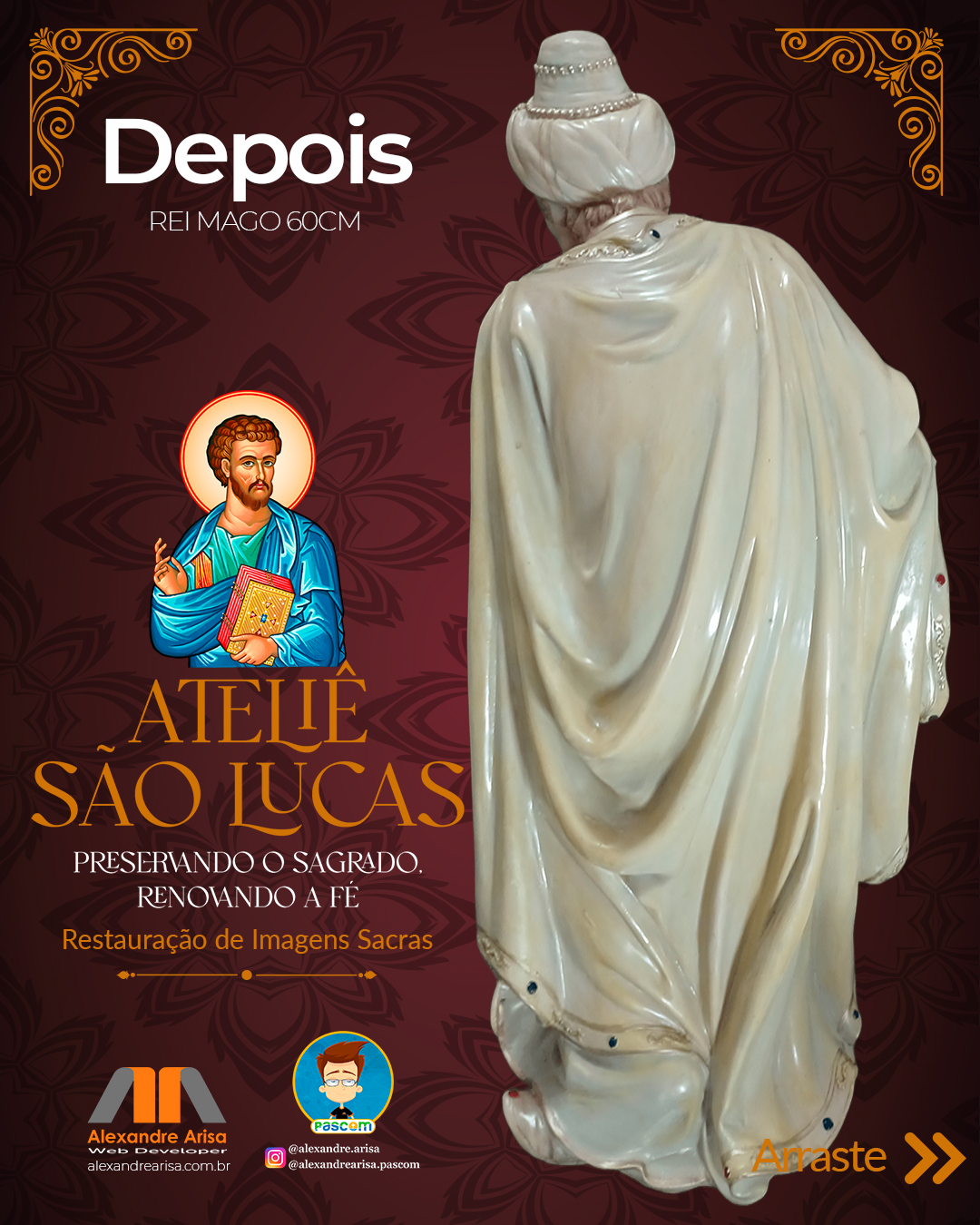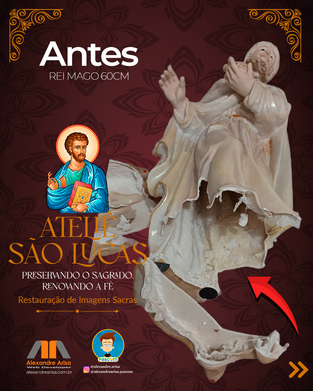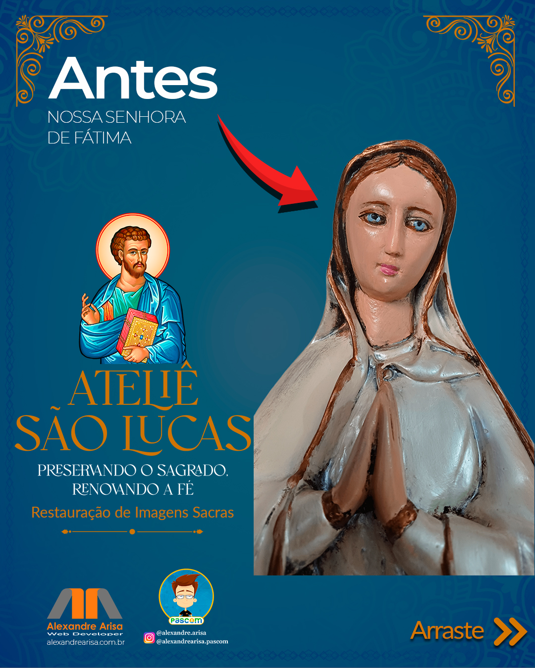 Mais do que restaurar, buscamos perpetuar a beleza e a mensagem de fé transmitidas por cada arte sacra, para que continuem a inspirar e evangelizar as futuras gerações.